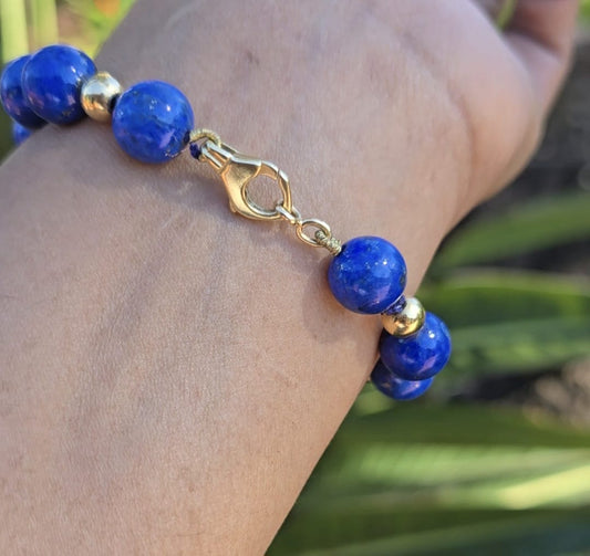 Vintage Lapis Lazuli Beads and 18 Carat Solid Gold Bracelet