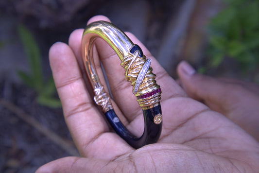 La Nouvelle Bauge Bangle with Rubies, Diamonds, and Blue Enamel