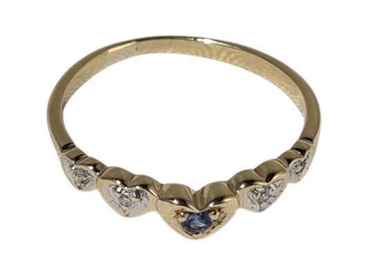 Sapphire and Diamond Hearts Ring in 9k Solid Gold