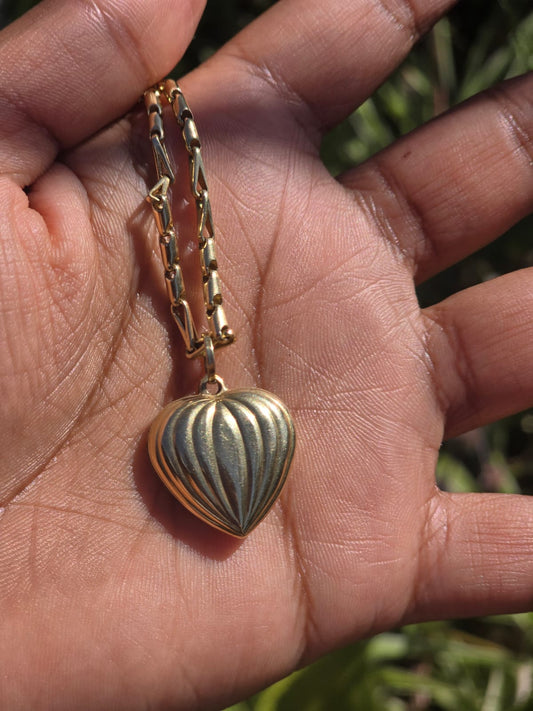 Vintage Puffy Heart Pendant in 9k Gold