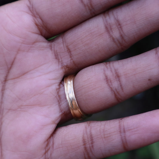 Vintage Cigar Band Ring with Star Pattern in 9 Carat Solid Gold