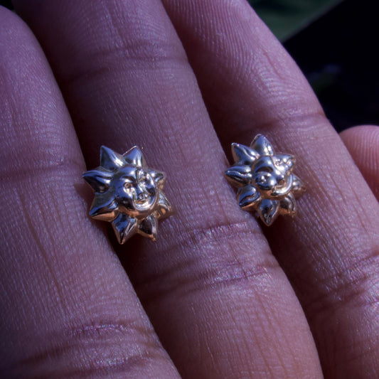 Super Cute Smiling Sun Stud Earrings in 14 Carat Solid Gold