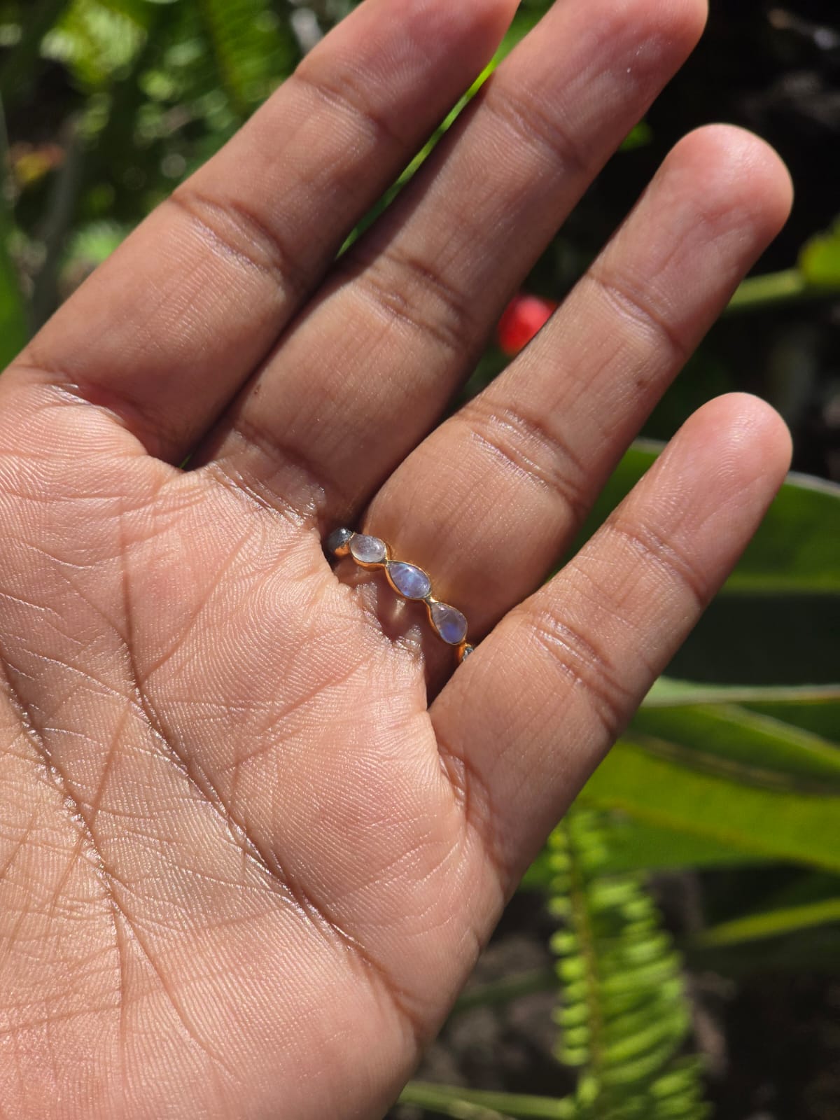 This charming antique moonstone cabochon ring in 9k gold adds a dash of whimsy and elegance to any outfit. Sized perfectly at J, its glowing moonstone captures light beautifully, making your hand the center of attention. Whether you’re stepping out or staying in, this playful piece is sure to spark joy and curiosity.