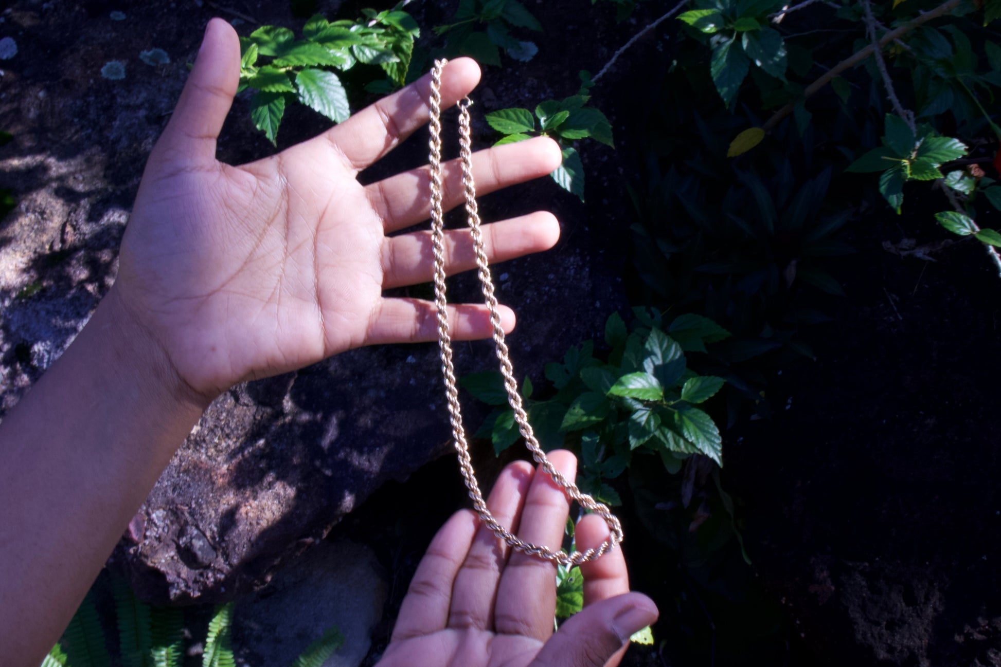 This 9-carat solid gold rope chain is a sparkling twist on classic style. Weighing 11.69g with a 4mm width and 45cm length, it’s perfect for adding a little golden glow to any outfit. Whether layered or worn solo, it’s ready to shine and catch some admiring glances!